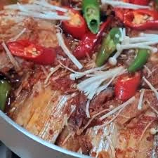 두 번째로, 중불에서 팬에 식용유를 두르고 다진 마늘과 생강을 볶아 향신료를 더해주세요. 그 후에 갈치를 팬에 넣고 앞뒤로 볶아주세요. 갈치가 골고루 색이 변하도록 조리합니다.