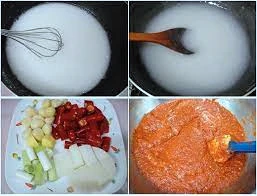 마늘과 생강을 갈아 양념 재료와 함께 섞어주세요. 갓김치의 맛과 향을 결정짓는 중요한 부분이니 신중하게 처리하세요.