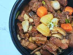 이제 황금 레시피를 통해 돼지갈비찜을 만들어냈습니다. 이 특별한 요리를 가족과 친구들과 함께 즐겨보세요. 매콤하고 고소한 맛이 입맛을 돋우며, 어떤 밑반찬과도 잘 어울립니다. 이 요리로 가정의 행복한 시간을 만들어보세요!