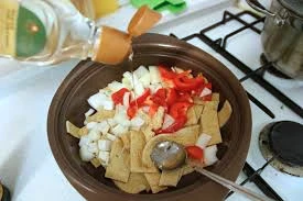 먼저 팬에 식용유를 데워줍니다. 뜨거워진 팬에 어묵을 넣고 중불에서 볶아주세요. 어묵이 골드 브라운으로 익을 때까지 약 5분간 볶아주면 특유의 고소한 향이 나고 바삭한 식감이 납니다.
