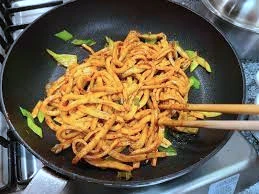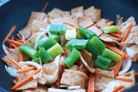 마지막으로 파와 고추를 넣고 약간 볶아줍니다. 파와 고추를 넣어 어묵볶음에 더 많은 신선한 맛과 아삭한 식감을 더할 수 있습니다.
