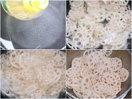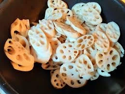 - 연근을 깨끗하게 씻어주세요. 필요한 경우, 연근의 피부를 깎아내고 얇게 슬라이스하세요.