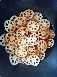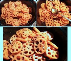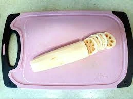 - 연근을 슬라이스할 때 두께를 일정하게 유지하면 조리 시간이 균일해집니다.
