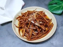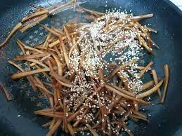 6. 우엉조림의 맛과 향을 더하기 위해 다른 재료를 추가할 수도 있습니다. 예를 들어, 고추장을 조금 넣어 매콤한 맛을 더할 수 있어요.